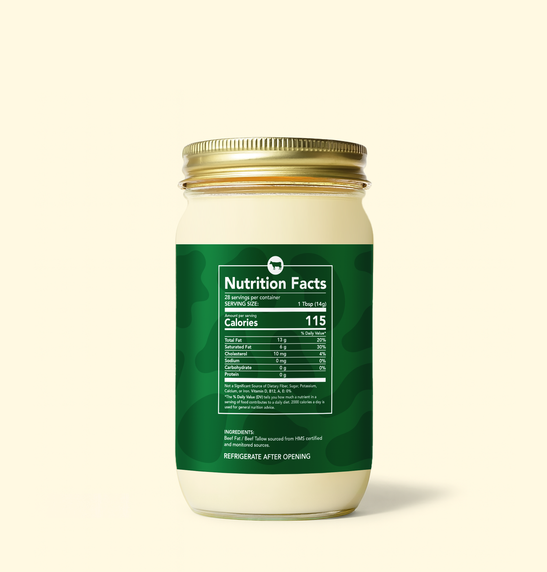 Our carefully rendered, grass-fed Cooking Beef Tallow brings back the wholesome, savory flavor of traditional cooking. With a high smoke point, it’s ideal for frying, roasting, baking, or sautéing — without breaking down like processed oils.